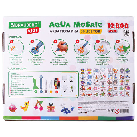 Аквамозаика BRAUBERG KIDS - это набор специальных бусин для создания картинок на трафаретах, входящих в набор. Бусины склеиваются между собой, если побрызгать на них обычной водой. Аквамозаика развивает у ребёнка усидчивость и креативное мышление.