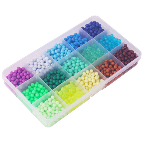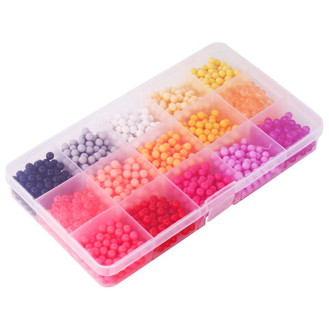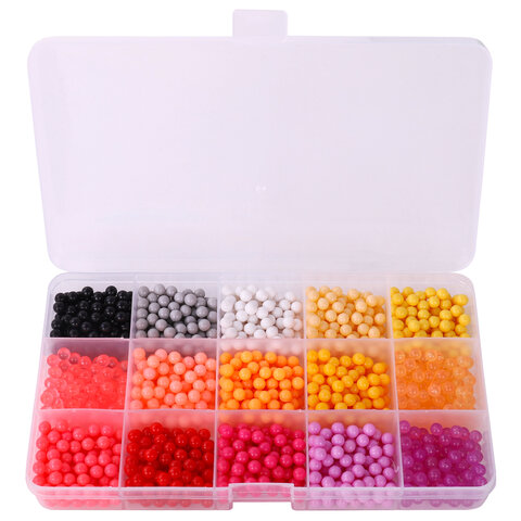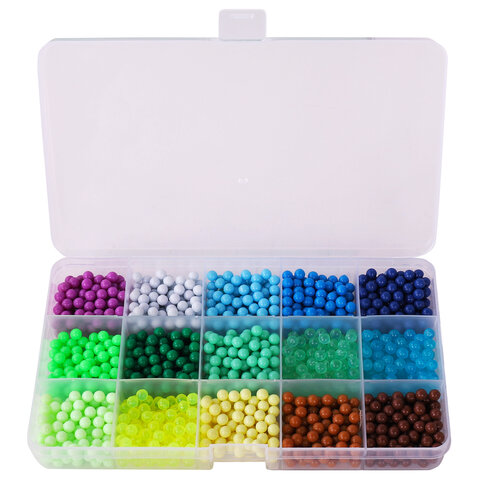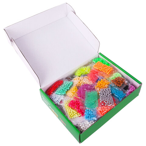 Как играть: 1. Выберите понравившийся рисунок и поместите карточку с ним под прозрачную подставку-трафарет. 2. Набирайте бусины нужных цветов в специальную ручку и выкладывайте их на трафарет, нажав на кнопку внизу ручки. Обратная сторона ручки оснащена специальной ложечкой, которая позволяет набирать по несколько бусин сразу! 3. Продолжайте выкладывать бусины различных цветов по трафарету, пока не закончите рисунок. 4. Наберите в бутылочку обычной воды и побрызгайте на фигурку водой. 5. Подождите 20-60 минут (в зависимости от количества воды, сложности фигурки). 6. Снимите готовую игрушку с подставки специальной лопаткой! Получившаяся игрушка достаточно крепкая, в неё можно играть или подарить друзьям.