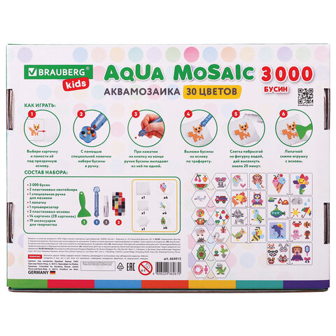 Аквамозаика BRAUBERG KIDS - это набор специальных бусин для создания картинок на трафаретах, входящих в набор. Бусины склеиваются между собой, если побрызгать на них обычной водой. Аквамозаика развивает у ребёнка усидчивость и креативное мышление.
