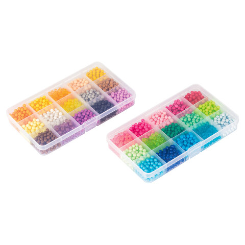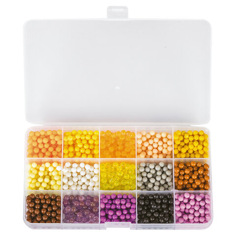 Как играть: 1. Выберите понравившийся рисунок и поместите его под прозрачную подставку-трафарет. 2. Набирайте бусины нужных цветов в специальную ручку и выкладывайте их на трафарет, нажав на кнопку внизу ручки. Обратная сторона ручки оснащена специальной ложечкой, которая позволяет набирать по несколько бусин сразу! 3. Продолжайте выкладывать бусины различных цветов по трафарету, пока не закончите рисунок. 4. Наберите в бутылочку обычной воды и побрызгайте на фигурку водой. 5. Подождите 20-60 минут (в зависимости от количества воды, сложности фигурки). 6. Снимите готовую игрушку с подставки! Получившаяся игрушка достаточно крепкая, в неё можно играть или подарить друзьям.
