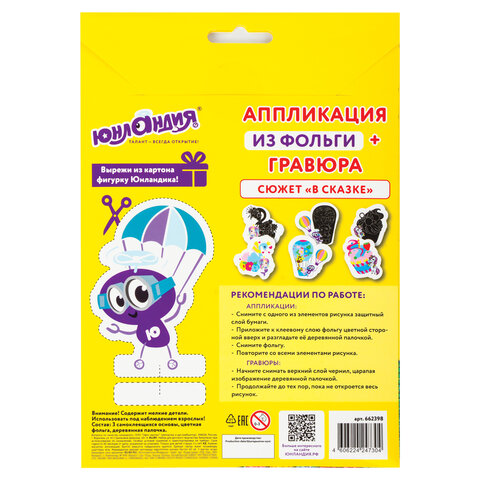 Гравюра-аппликация ЮНЛАНДИЯ "В сказке" - это необычное увлекательное занятие, которое способствует развитию мелкой моторики, воображения и фантазии! Для создания аппликации не требуются ножницы и клей, все необходимые элементы входят в набор.