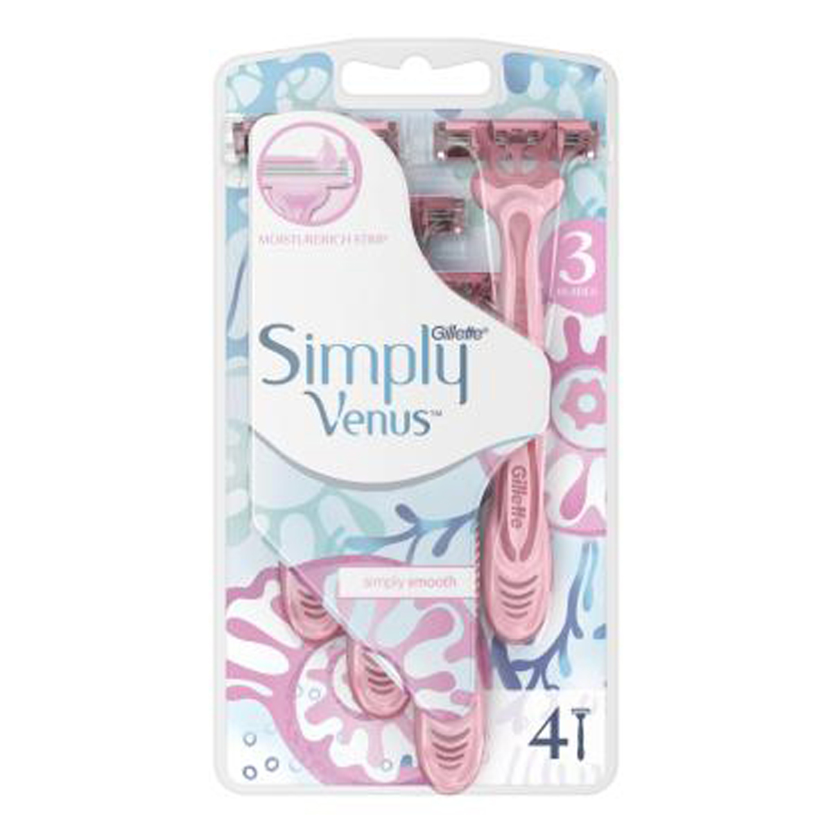 Одноразовая женская бритва Gillette Venus 3, в упаковке 4 шт. Одноразовые бритвы для женщин Gillette Venus 3 обеспечивают гладкое бритье по доступной цене, вызывая меньше раздражения. (По сравнению с Simply Venus2). Преимущества: - Плавающая головка с 3 лезвиями повторяет контуры тела и обеспечивает точное и гладкое бритье с каждым движением; - Женская бритва Gillette Venus 3 оснащена 3 более острыми лезвиями. (По сравнению с Simply Venus 2); - Благодаря увлажняющей полоске MoistureRich бритва легко скользит по коже, вызывая меньше раздражения (по сравнению с Simply Venus 2); - Прорезиненная комфортная ручка обеспечивает невероятный контроль и не выскользнет даже в душе. - Защитные микропластины сокращают количество порезов и царапин. Не требует смены кассет, просто замените бритву. Наслаждайтесь гладким и комфортным бритьем! Срок годности: 60 месяцев.