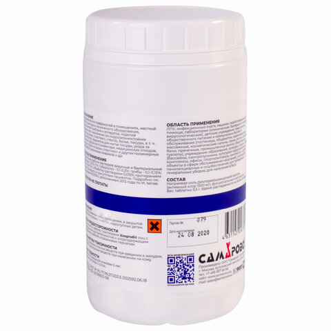 Хлорные таблетки для дезинфекции поверхностей, инструментов, биоматериалов и т.д., для проведения текущей и генеральной дезинфекции.