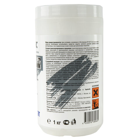 Химический состав дезсредства Дезитабс: хлорсодержащие (выделяющие активный хлор) действующие вещества: натриевая соль дихлоризоциануровой кислоты 84%