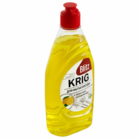 Безопасность использования. Средство для мытья посуды KRIG Blitz не содержит вредных веществ и безопасно для кожи рук. Оно не сушит кожу и не вызывает раздражения.