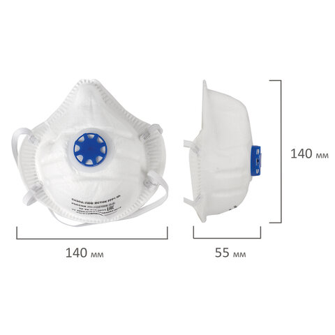 Респиратор противоаэрозольный, средний класс защиты FFP2, КОМПЛЕКТ 10 шт., с клапаном KN-95, 00999Х04780
