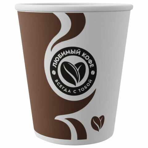 Стакан одноразовый бумажный 200/276 мл, D 80 мм, 50 шт., однослойный для холодного/горячего, "Любимый кофе", СКАНДИПАКК, -5102
