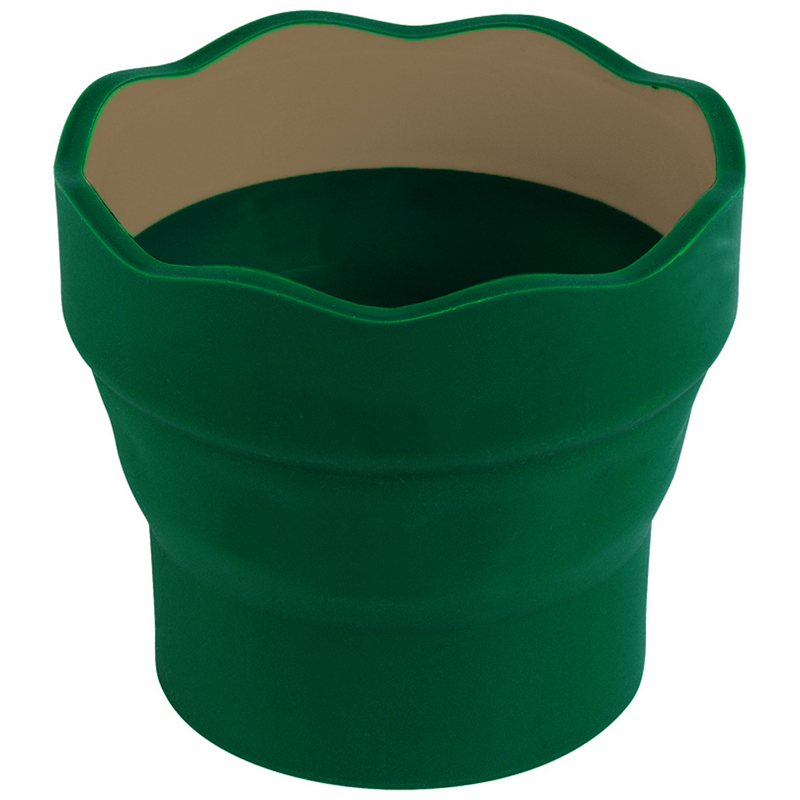 Складной стакан для воды Clic&Go от легендарного немецкого производителя Faber-Castell. Изготовлен из прочного нескользящего материала с которого легко смыть грязь. Удобен в хранении и транспортировке — достаточно его просто сложить. Имеет волнистые края, на которые удобно класть кисть.<br/>Цвет: темно-зеленый.
