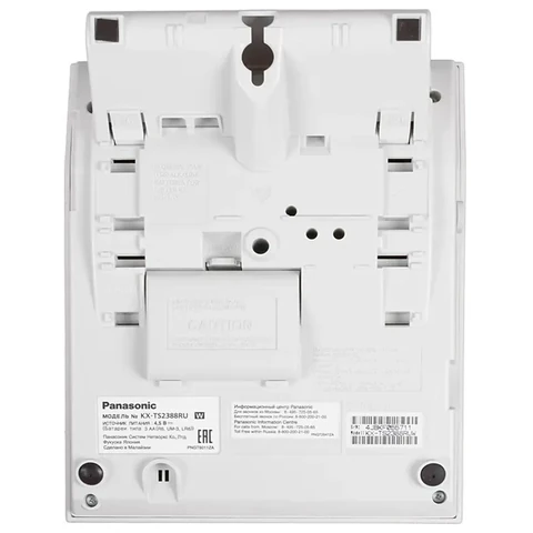 Panasonic KX-TS2388RUW изготовлен из пластика черного цвета. На корпусе модели находится дисплей, отображающий время, дату и номера входящих звонков, которые определяет поддерживаемая устройством функция АОН. Встроенная телефонная книга сохраняет до 50 номеров, а однокнопочный набор позволяет поставить 20 абонентов на быстрый вызов. Телефон можно установить на любую горизонтальную поверхность или монтировать на стену. При наличии второго устройства, работающего на той же линии, кнопка Flash осуществляет автоматический перевод соединения на него.