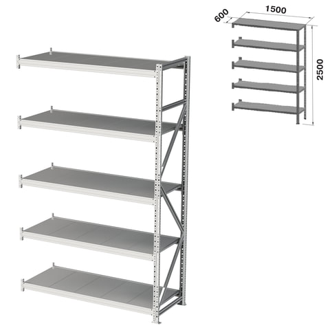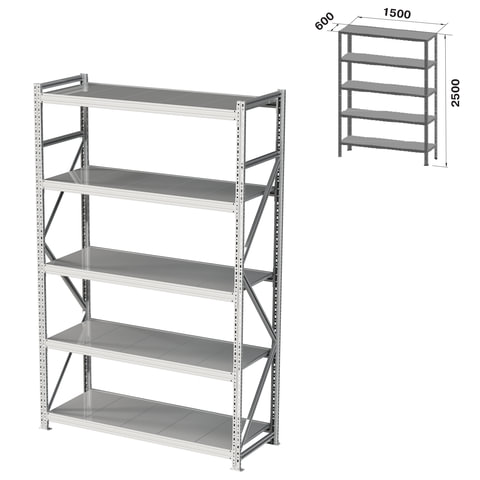 Стеллаж металлический (ПРИСТАВНАЯ СЕКЦИЯ) ПРАКТИК "MS Pro", 2500х1500х600 мм, 5 полок (КОМПЛЕКТ)
