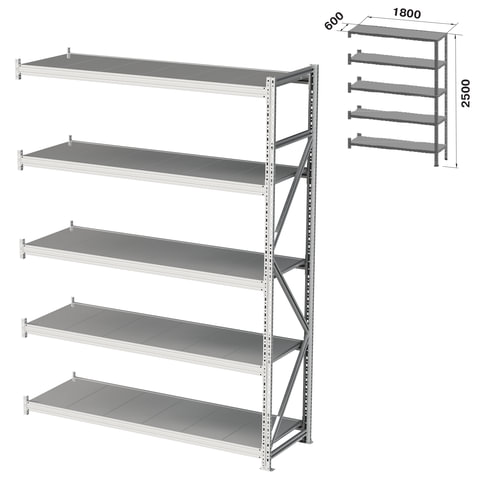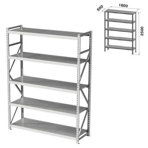 Стеллаж металлический (ПРИСТАВНАЯ СЕКЦИЯ) ПРАКТИК "MS Pro", 2500х1800х600 мм, 5 полок (КОМПЛЕКТ)