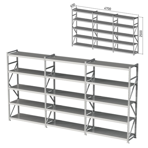 Стеллаж металлический (3 СЕКЦИИ) ПРАКТИК "MS Pro", 2500х4700х600 мм, (КОМПЛЕКТ)