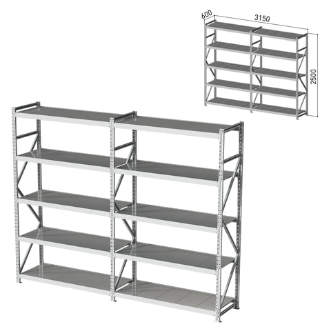 Стеллаж металлический (2 СЕКЦИИ) ПРАКТИК "MS Pro", 2500х3150х600 мм, (КОМПЛЕКТ)