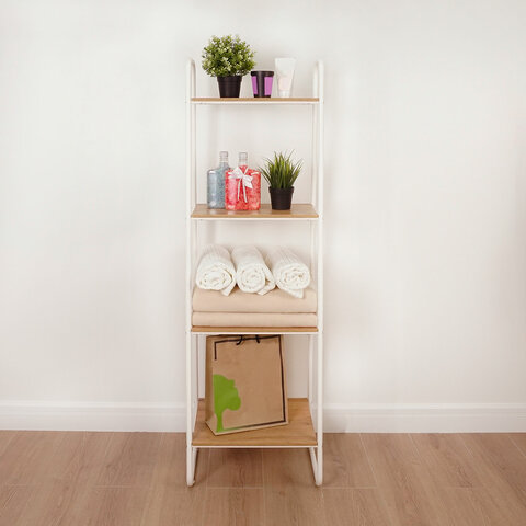 Стеллаж металл BOOMHOUSE (БУМХАУС) в1500*ш750*г300мм, 4 полки, нагрузка на стеллаж до 120 кг, белый, 291419