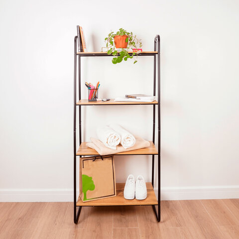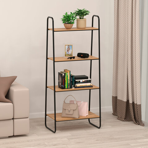 Стеллаж металл BOOMHOUSE (БУМХАУС) в1500*ш750*г300мм, 4 полки, нагрузка на стеллаж до 120 кг, черный, 291420