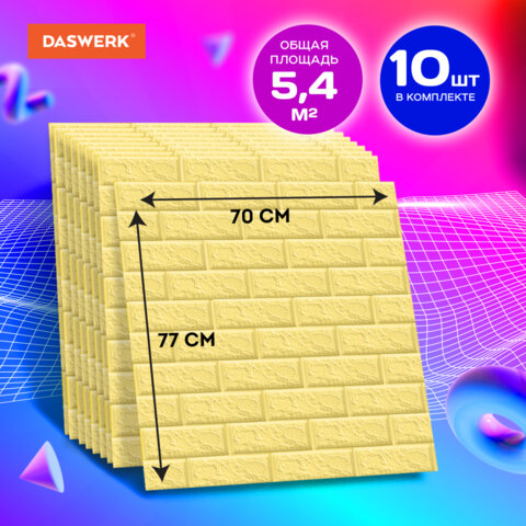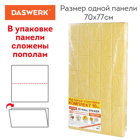 Панели для стен / стеновые панели, 3D, самоклеящиеся, "Белый кирпич", 10 шт., 70х77 см, DASWERK, 607988