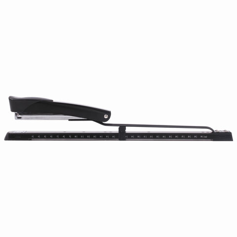 Металлический механизм позволяет сшивать открытым и закрытым способами документы объемом до 25 листов и регулировать глубину закладки бумаги до 30 см. Вмещает 100 скоб № 24/6. Регулятор расстояния сшивания имеет двойную градацию шкалы (сантиметр, дюйм). Корпус выполнен из металла и пластика.