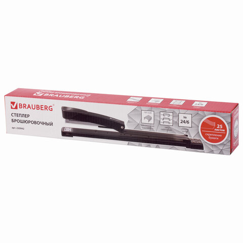 Брошюровочный степлер №24/6, 26/6 BRAUBERG "Universal" предназначен для скрепления крупноформатных документов.