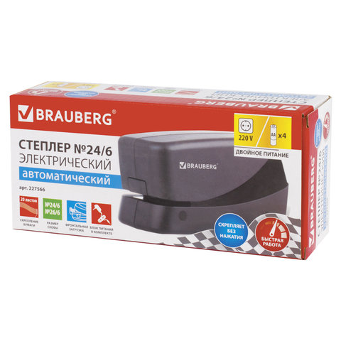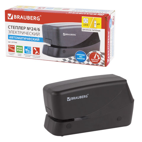 Профессиональный электрический степлер BRAUBERG предназначен для скрепления бумаги без применения усилий. Совместим со скобами № 24/6, 26/6.