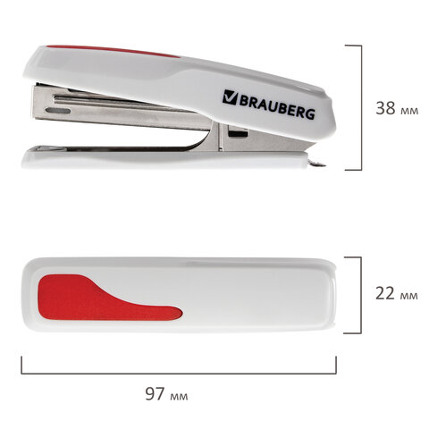 Степлер №24/6, 26/6 металлический BRAUBERG "Universal+", до 25 листов, белый, 227781