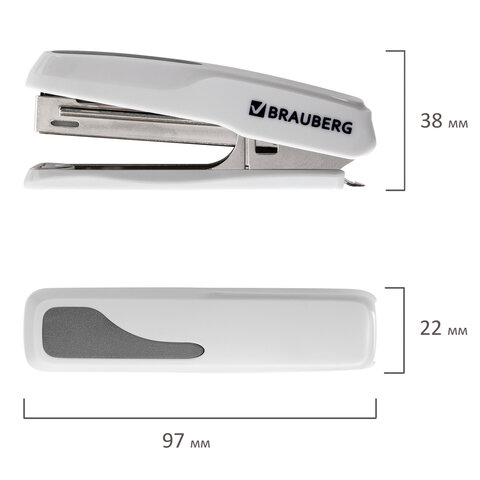 Степлер №24/6, 26/6 металлический BRAUBERG "Universal+", до 25 листов, белый, 227781