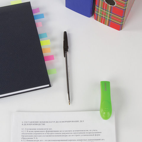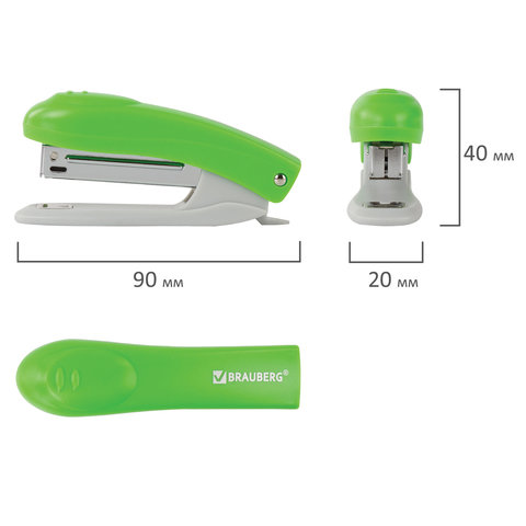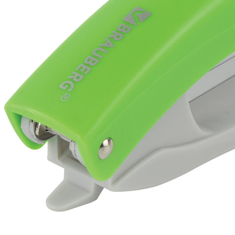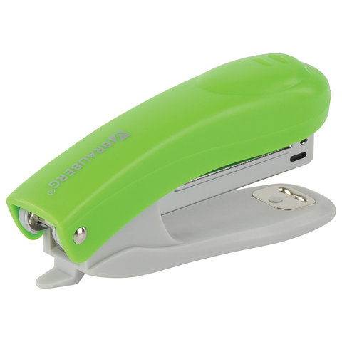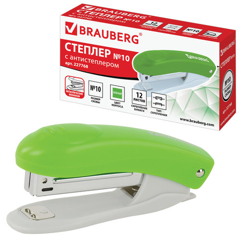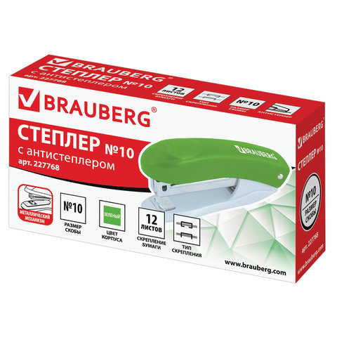 Степлер известного немецкого бренда BRAUBERG способен скрепить до 12 листов, что позволит экономить рабочее время. Стандартный размер скоб №10 подходит для бумаги различной средней плотности. Глубина закладки бумаги - 47 мм. Данная модель может выступать в качестве антистеплера, позволяющего разжать закрепленные скобы более качественно, не нанося повреждений ни материалу, ни кончикам пальцев. Корпус изготовлен из пластика. За счет миниатюрных размеров не займет на рабочем столе много места, а ярко-зеленое сочетание с классическим серым станет отличным акцентом в интерьере.