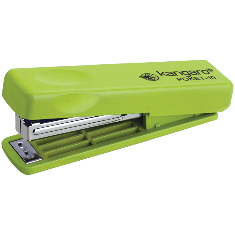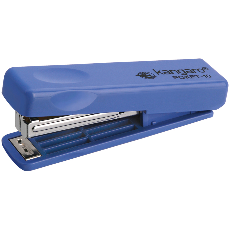 Компактный степлер Kangaro Poket-10 - отличный вариант для работы в офисе и дома! Современный функциональный дизайн включает в себя механизм фиксации в закрытом состоянии. Степлер можно легко разместить в кармане или пенале благодаря прочному клипу на основании конструкции.