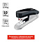 Удобный степлер для использования в офисе и дома. Имеет встроенный антистеплер, сшивает до 15 листов. Номер скобы: 10. Глубина захвата – 37 мм. Механизм скрепления выполнен из прочного металла, а корпус из высококачественного пластика. Глянцевый чёрный цвет гармонично впишется в рабочее пространство. В комплект входит 200 скоб №10.