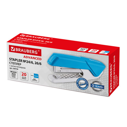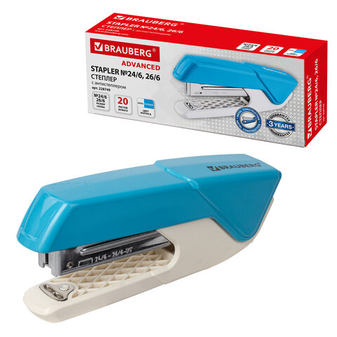 Настольный степлер №24/6, 26/6 BRAUBERG "ADVANCED" в ярком пластиковом корпусе с металлическим механизмом предназначен для надежного и качественного скрепления документов в офисе и дома.