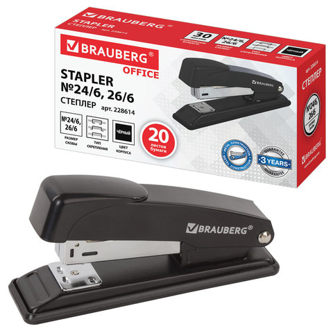 Настольный металлический степлер BRAUBERG "Office" с классическим дизайном обеспечит качественное скрепление документов.