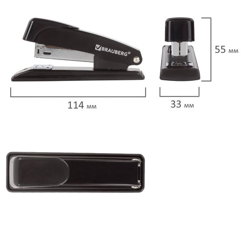 Степлер №24/6, 26/6 BRAUBERG "SUPER", до 30 листов, черный, 272739