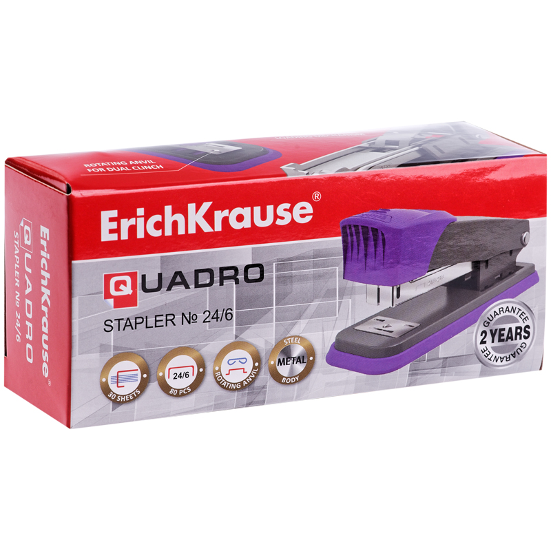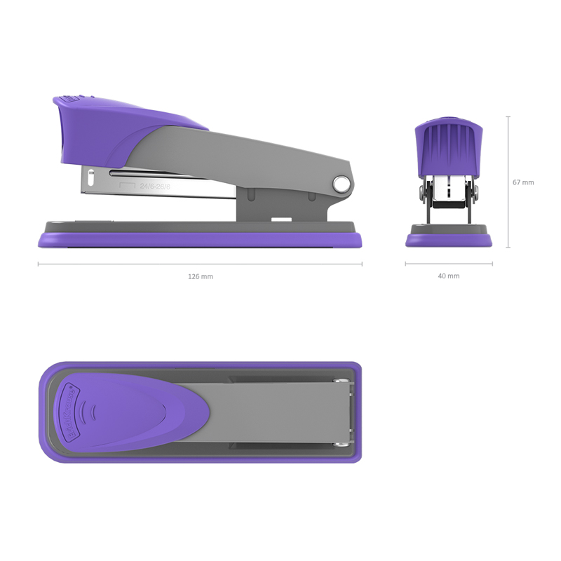 Степлер полностью изготовлен из высококачественной стали. Имеет два режима скрепления: постоянное и временное, а так же цельнометаллический механизм подачи скоб. Вмещает до 80 скоб №24/6 и до 100 скоб №26/6. Пробивает до 30 листов. Глубина закладки бумаги до 60 мм