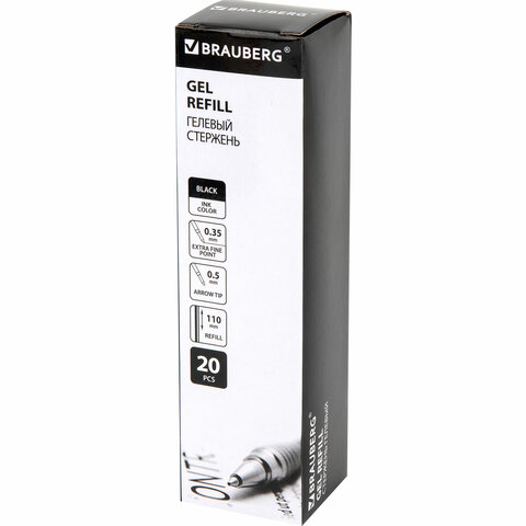Стержень BRAUBERG с гелевыми чернилами обеспечивает ровное, комфортное письмо. Подходит к большинству автоматических гелевых ручек.