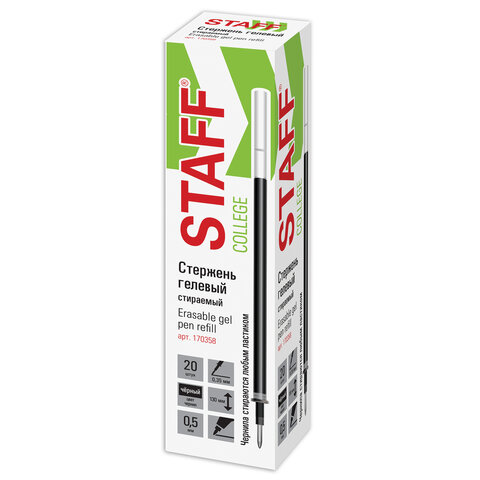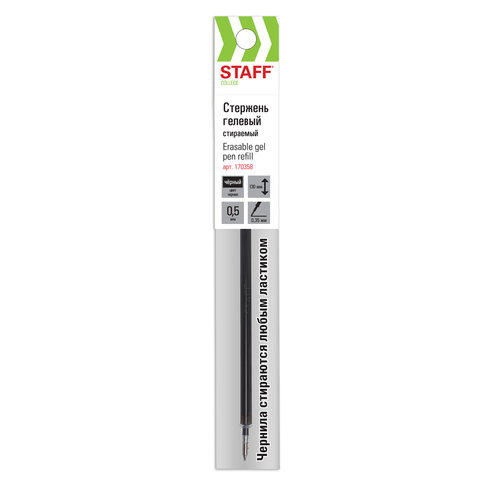 Стержни гелевые STAFF, 135мм, НАБОР 10шт+2 шт в ПОДАРОК, ЧЕРНЫЕ, узел 0,5мм,линия 0,35мм,170411