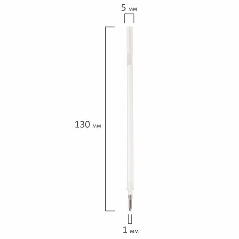 Белые гелевые чернила идеально подходят для создания рисунков на черной бумаге, обучения и других творческих начинаний. Стержень длиной 130 мм снабжен стандартным наконечником. Диаметр пишущего узла 1 мм создает ровную линию письма 0,5 мм. Каждый стержень упакован в индивидуальный пакетик.