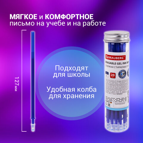 Стираемые гелевые стержни BRAUBERG в пластиковой тубе.