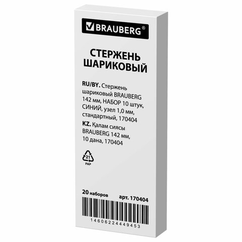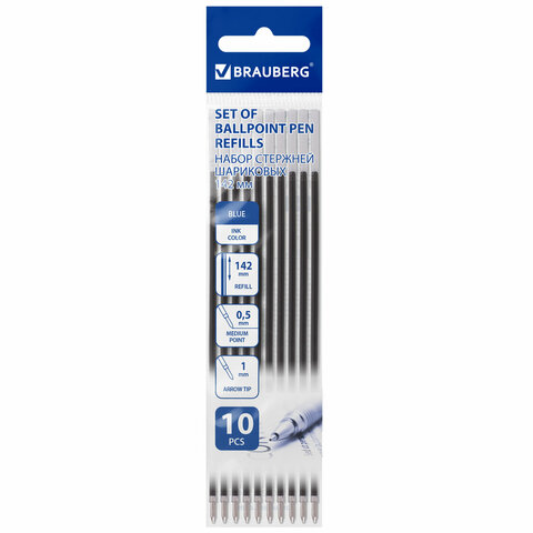 Набор из 10 надежных сменных стержней BRAUBERG для шариковых ручек.