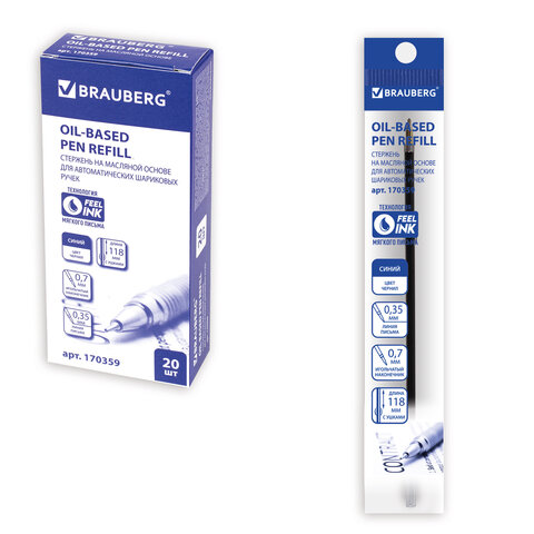 Надежный сменный стержень BRAUBERG для автоматических шариковых ручек.