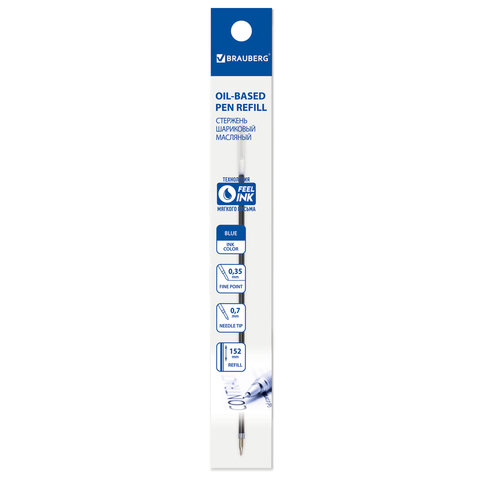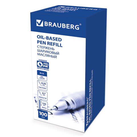 Стержень шариковый масляный BRAUBERG 140 мм, СИНИЙ, игольчатый узел 0,7 мм, линия письма 0,35 мм, 170402