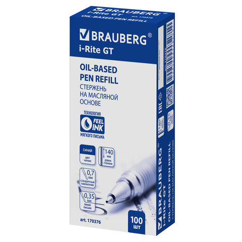 Надежный сменный стержень BRAUBERG "i-Rite GT" для шариковых ручек.