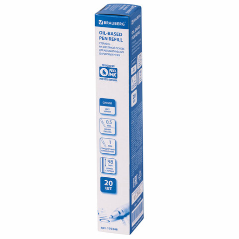 Стержень шариковый BRAUBERG 142 мм, СИНИЙ, стандартный узел 1,0 мм, линия письма 0,5 мм, 170403