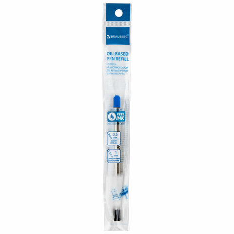 Стержень шариковый масляный BRAUBERG 135 мм, СИНИЙ, игольчатый узел 0,7 мм, линия письма 0,5 мм, 170401