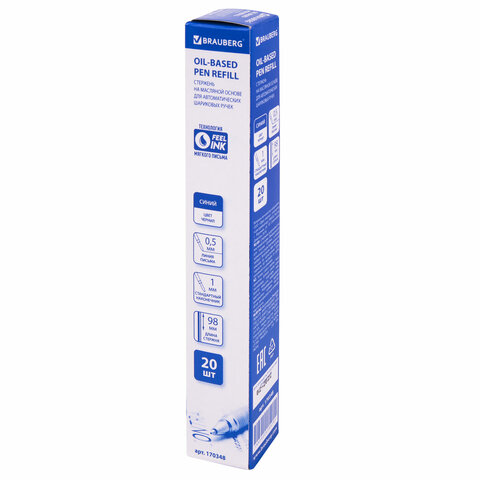 Стержень шариковый BRAUBERG 142 мм, СИНИЙ, стандартный узел 1,0 мм, линия письма 0,5 мм, 170403