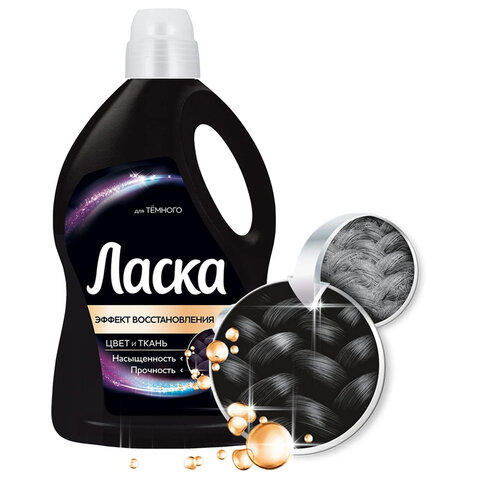 Жидкое средство для стирки автомат ЛАСКА "Для тёмного" специально разработано для активного ухода за одеждой чёрного и тёмных цветов и поддержания первозданной красоты вещей стирка за стиркой.