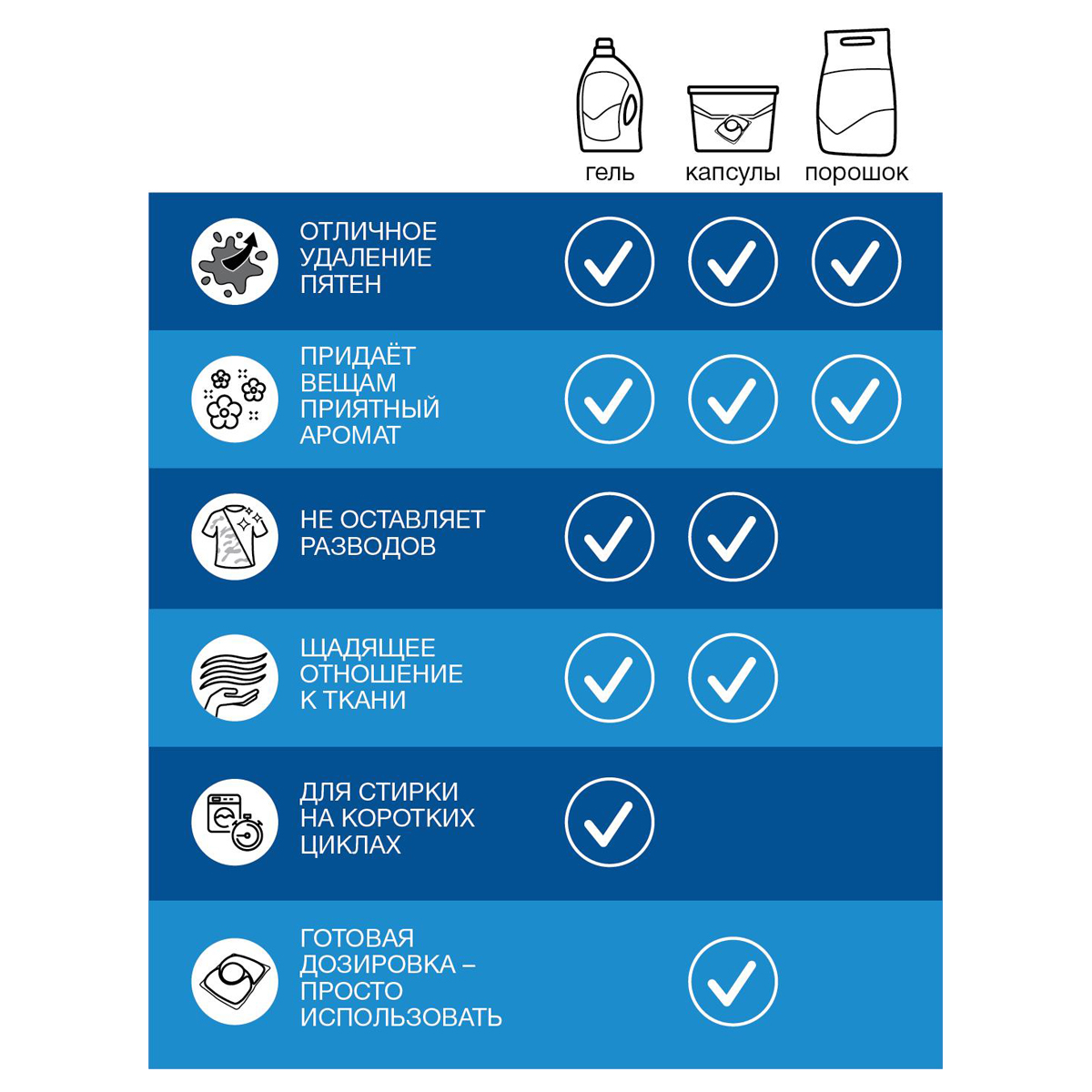 • Больше не нужно задумываться о правильной дозировке, 1 капсула – 1 стирка