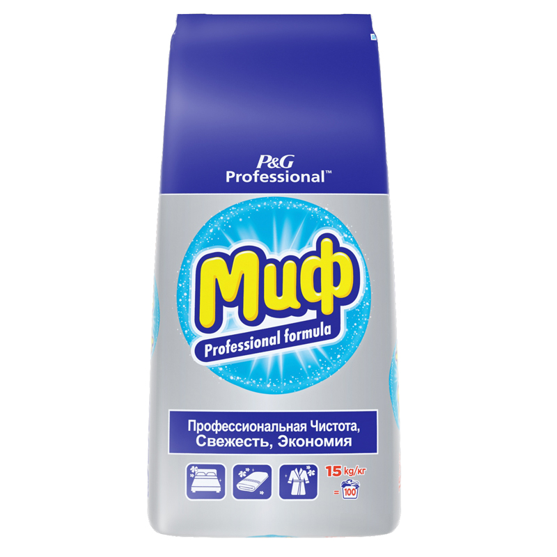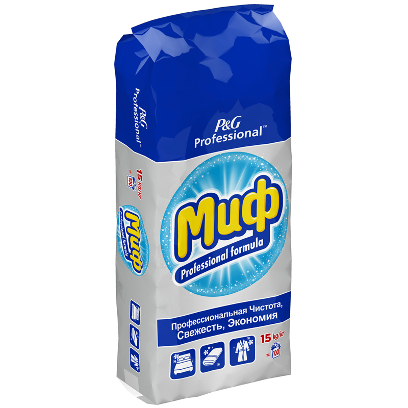 Стиральный порошок Миф "Exper" — это профессиональный стиральный порошок, специальная формула которого обеспечивает безупречный результат после первой стирки: великолепное выведение пятен, глубокое очищение, яркость цвета, восхитительная свежесть и эффективность при низкой температуре. Он прекрасно справляется с уничтожением пятен от крахмала, жира, белков, при этом отлично вымывается из одежды, не оставляет разводов, не подвергает кожу аллергическим реакциям. Подходит для ресторанов и гостиниц, средство способно очистить до 250 кг белья. Состав: кислородсодержащий отбеливатель, от пяти до пятнадцати процентов анионных ПАВ, менее пяти процентов: ЭДТА и ее соли, катионные ПАВ; неионогенные ПАВ, энзимы, поликарбоксилаты, мыло, цеолиты, оптические отбеливатели, отдушка.