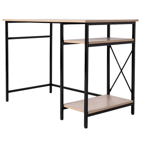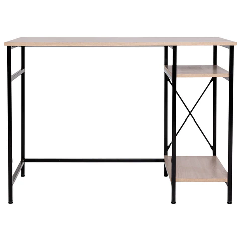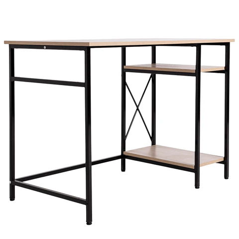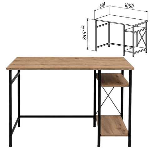 Стол BRABIX "SMART CD-018", 1100х600х765 мм, ЛОФТ, 2 полки, металл/ЛДСП ясень шимо светлый, каркас черный, 641945