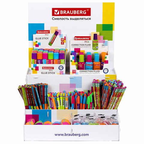 Универсальные дисплеи BRAUBERG позволяют разместить максимальное количество продаваемого ассортимента серии MIX даже в небольших торговых пространствах. Яркий дизайн дисплея привлечет внимание покупателей к товару.