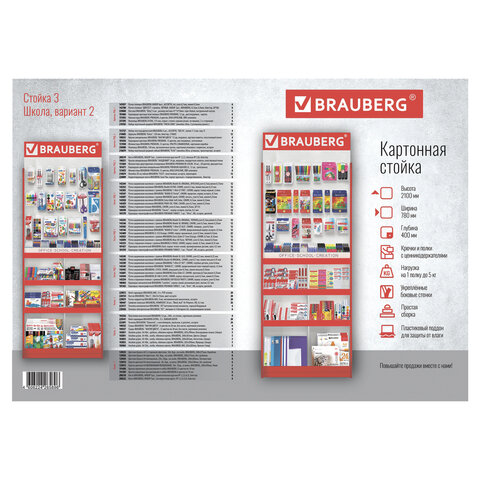 Стильная и вместительная фирменная стойка BRAUBERG позволит выгодно разместить продаваемый ассортимент так, чтобы клиенту было удобно выбрать нужный товар.