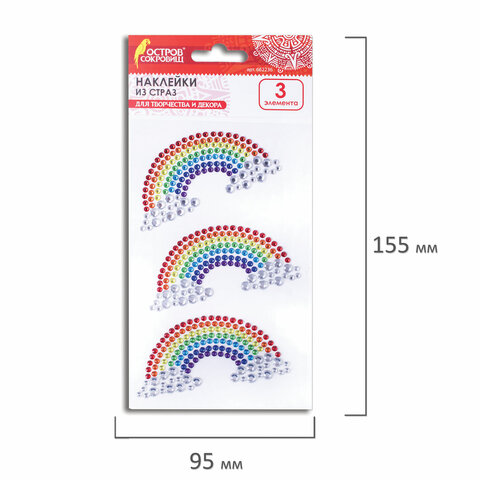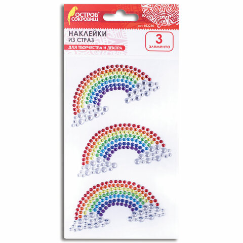 Наклейки готовые из страз НА РАДУГЕ, 7 декоративных элементов, 9,5х15,5 см, ОСТРОВ СОКРОВИЩ, 662237